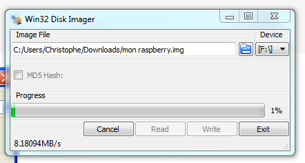 Mettre un chemin et un nom de fichier avec l’extension .img Exemple mon raspberry.img